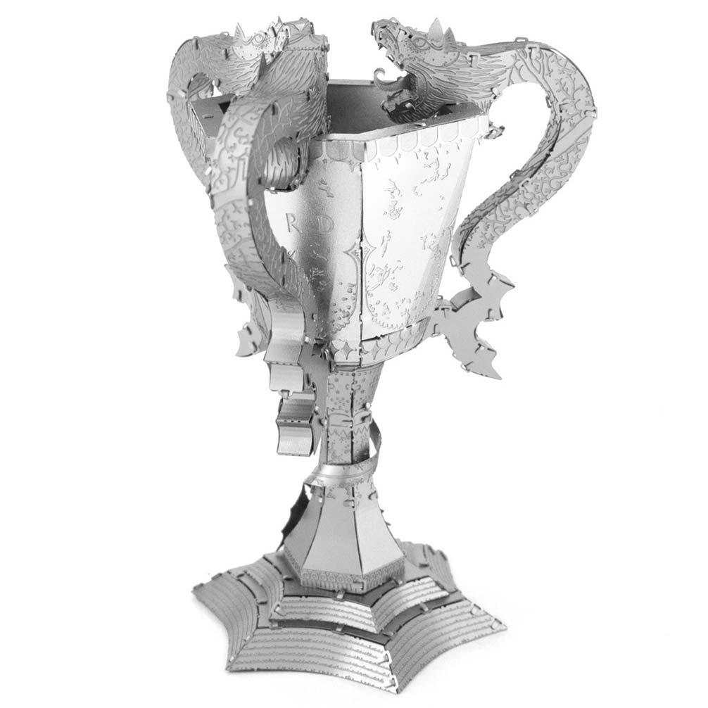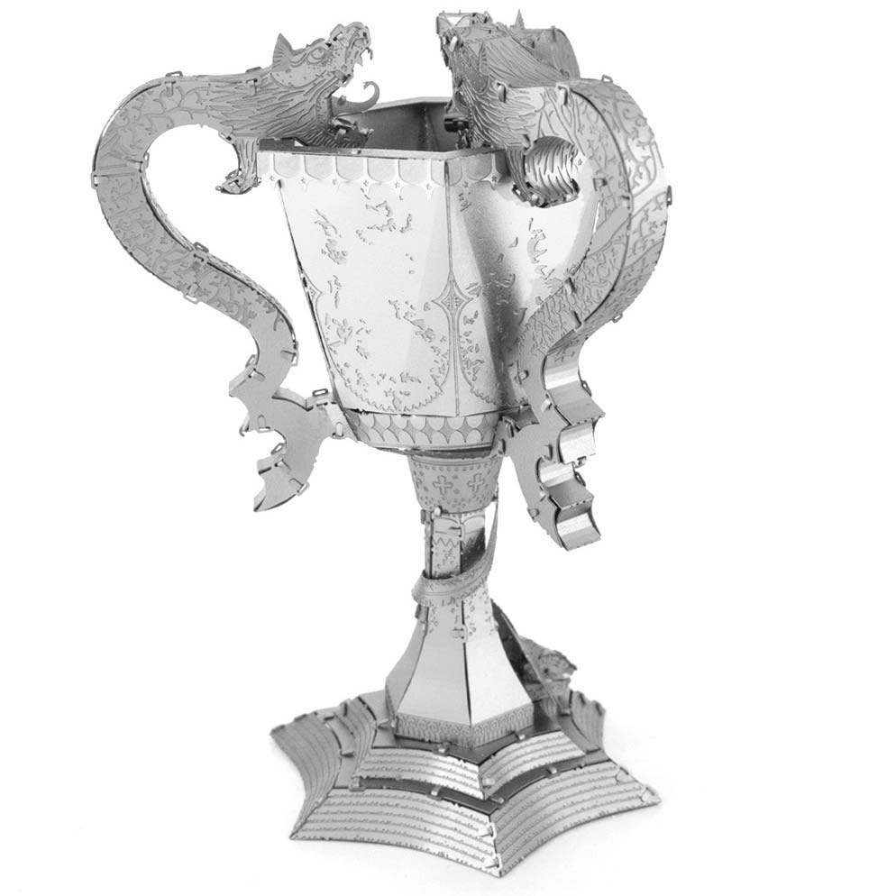 Das Modell Harry Potter Triwizard Cup von Metal Earth besteht aus 2 Metallbögen (11 x 11 cm) und ist aufgebaut 6,4 x 6,4 x 8,6 cm groß. Der Trimagische Pokal aus Harry Potter war ein glänzender Pokal, der dem Gewinner des Trimagischen Turniers verliehen wurde und als Ehrensymbol von der siegreichen Zauberschule bis zum nächsten Turnier aufbewahrt wurde.